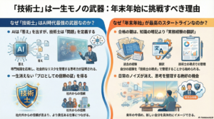 これらは、まさに「AIには代替できない、プロフェッショナルなエンジニアの思考プロセス」そのものです。試験対策を通じてこの思考を体系化することは、実務での判断スピードと精度を劇的に向上させます。