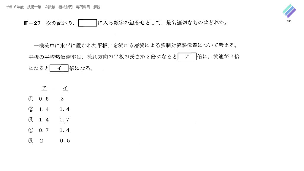 技術士一次試験 機械部門 令和6年 Ⅲ-27 解答