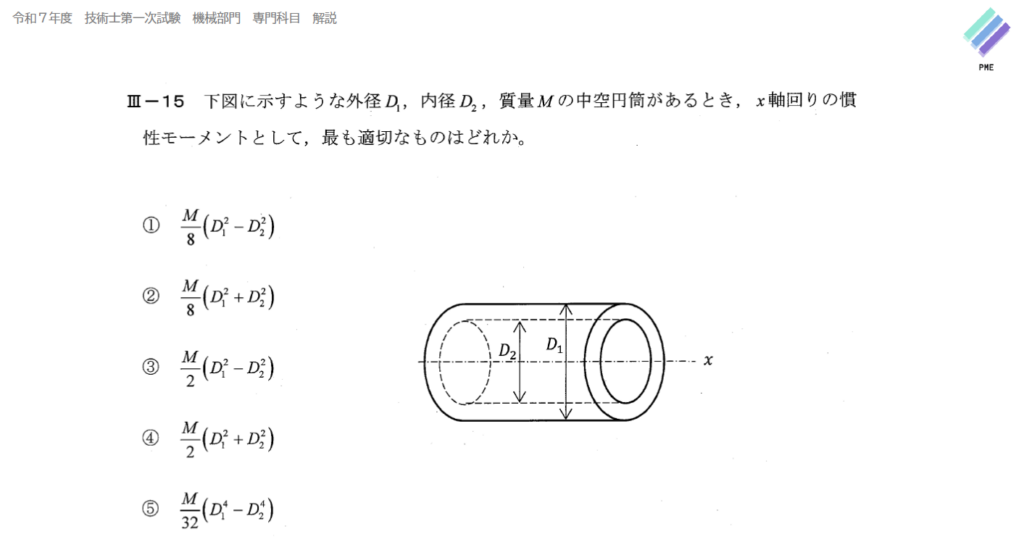 技術士一次試験 機械部門 令和7年 Ⅲ-15 解答