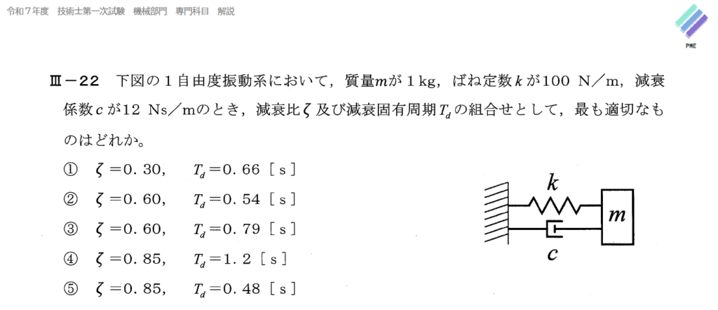 技術士一次試験 機械部門 令和7年 Ⅲ-22 解答