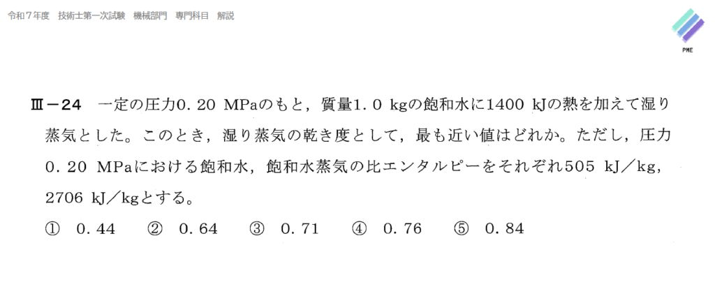 技術士一次試験 機械部門 令和7年 Ⅲ-24 解答