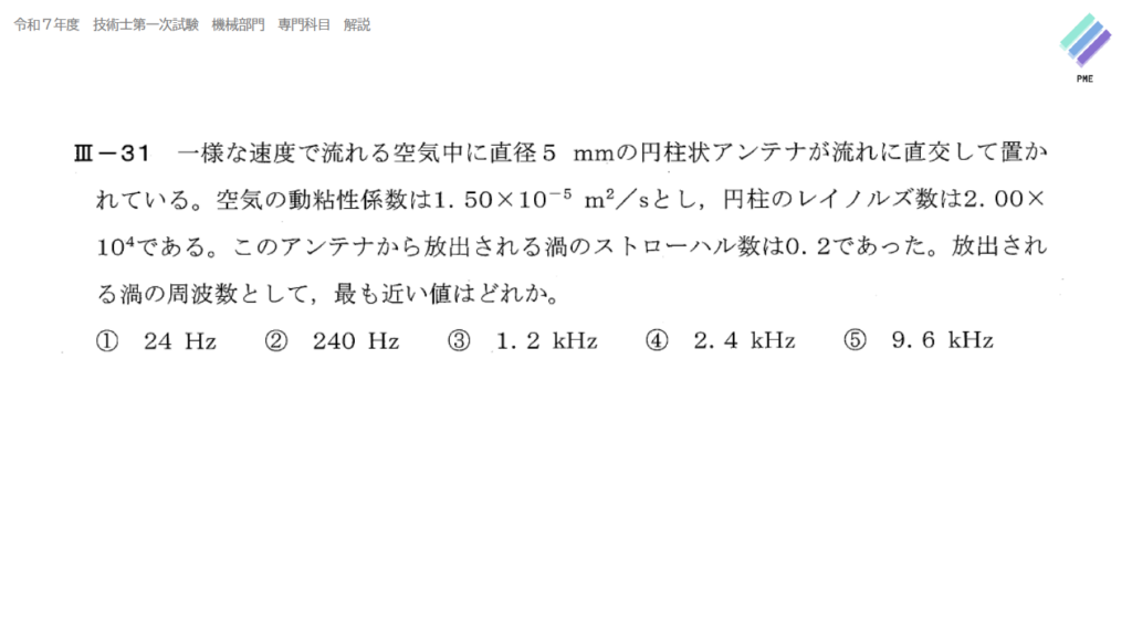 技術士一次試験 機械部門 令和7年 Ⅲ-31 解答
