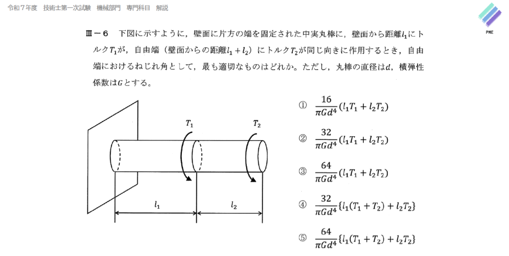 技術士一次試験 機械部門 令和7年 Ⅲ-6 解答